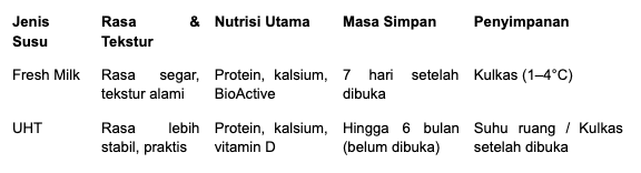Perbedaan utama susu segar pasteurisasi dan susu UHT terletak pada proses pengolahan, masa simpan, dan penyimpanan. Pilihan terbaik tergantung pada kebutuhan Anda dan keluarga.